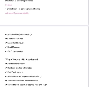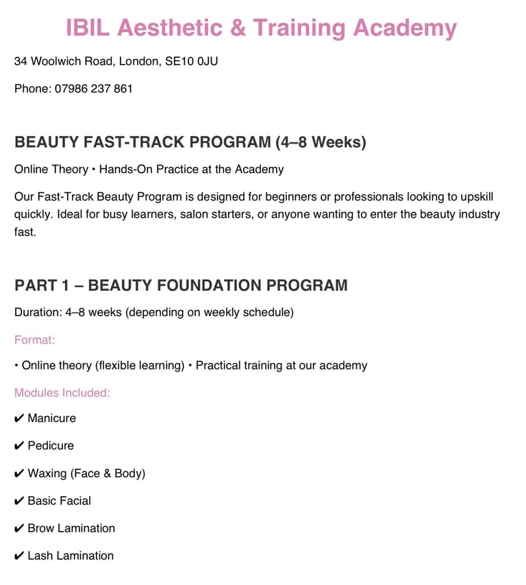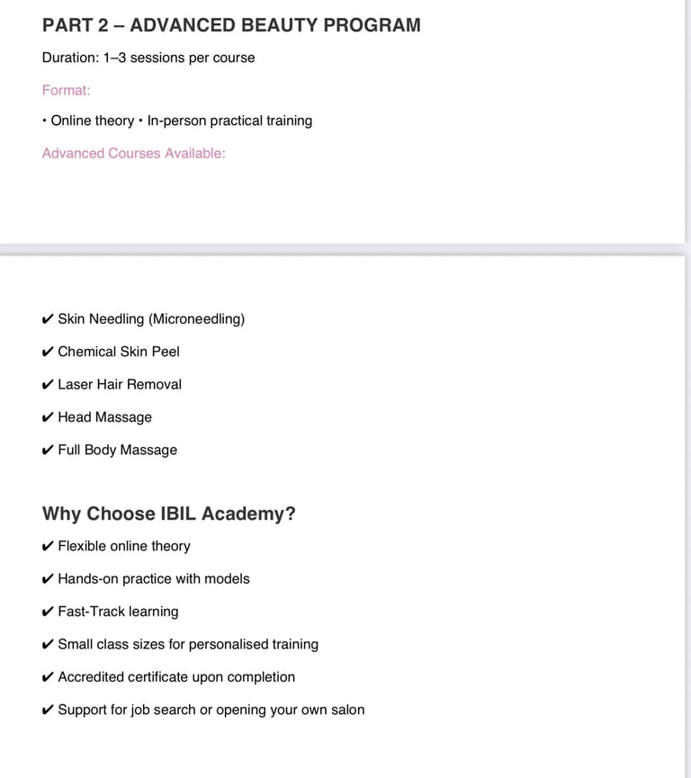 We offer nails, facial, lash & brow, waxing, laser, and body shaping courses.